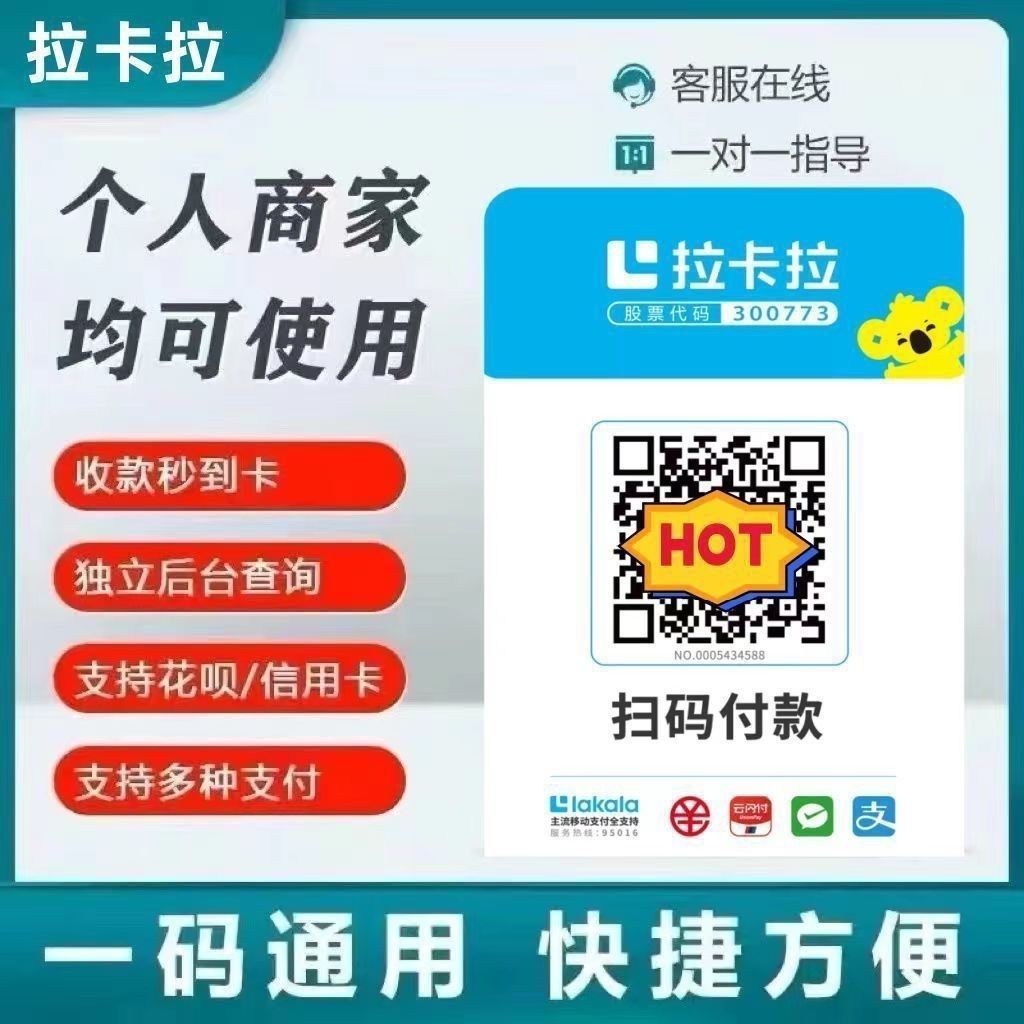 拉卡拉扫码收款移动升级收款牌子扫码支付收款码手持收银吊牌挂牌