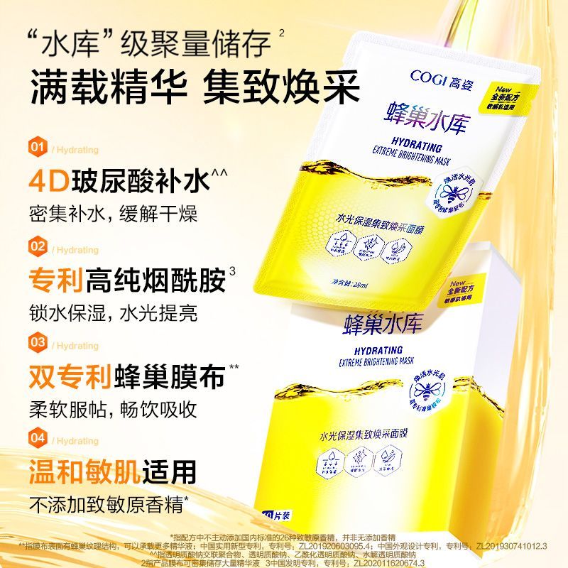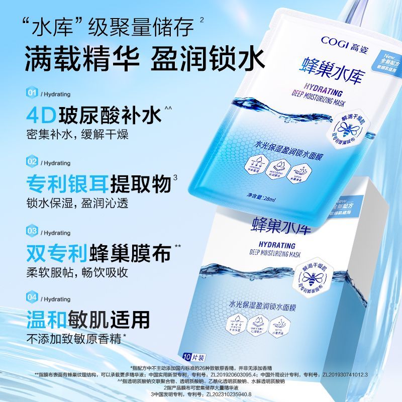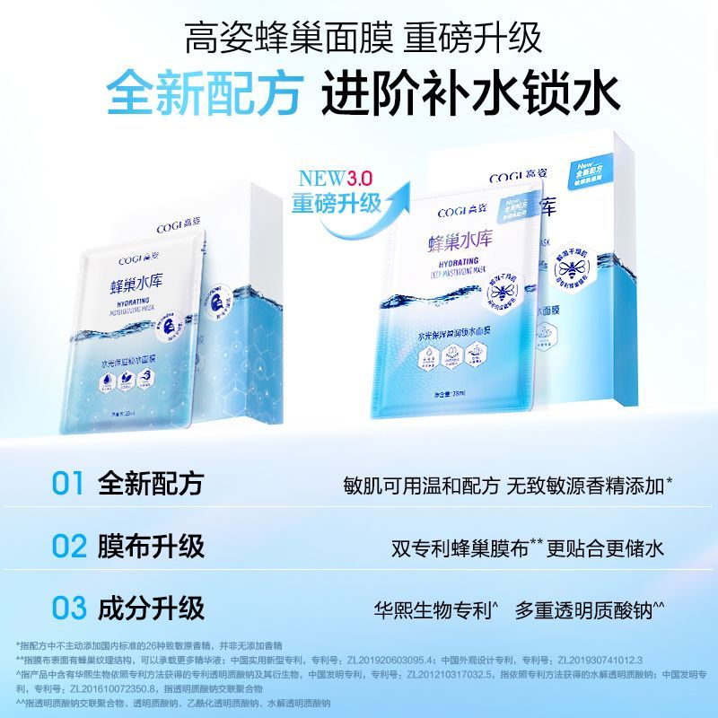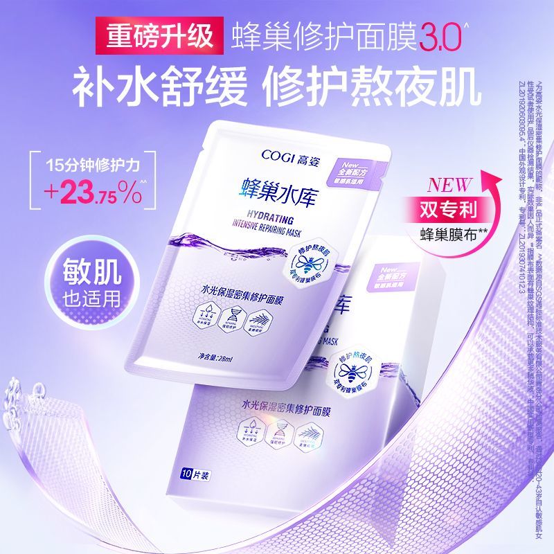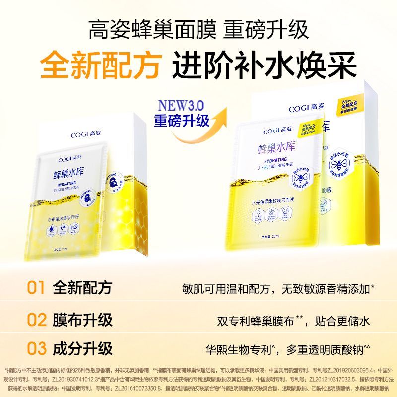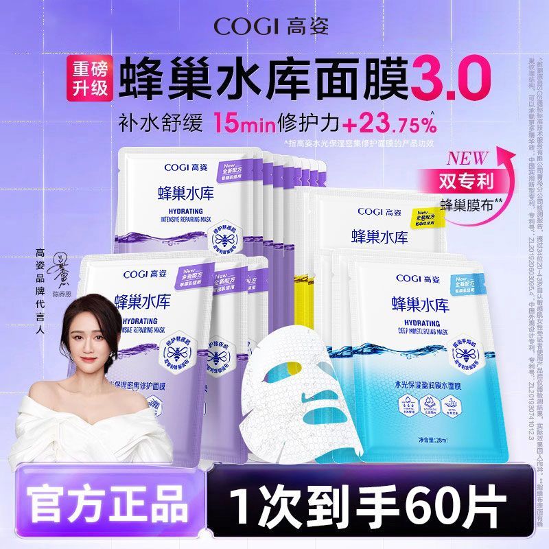 【3.0升级版60片】高姿面膜蜂巢补水保湿舒缓积雪草修护熬夜肌