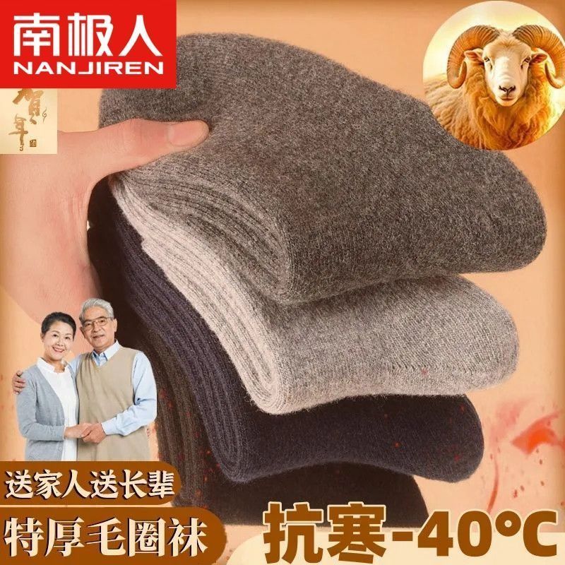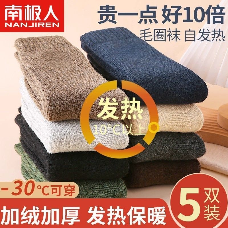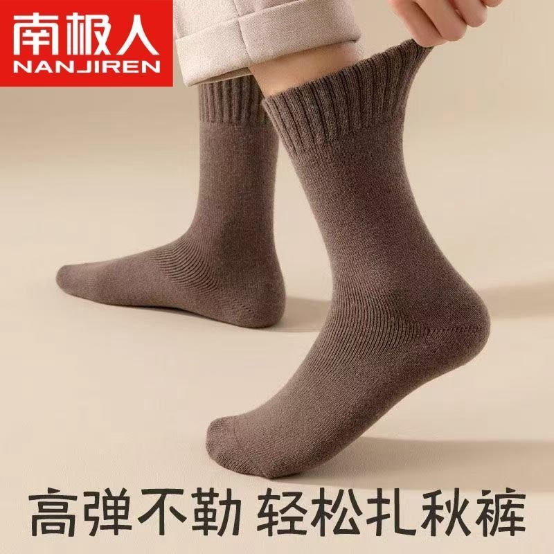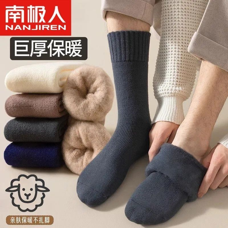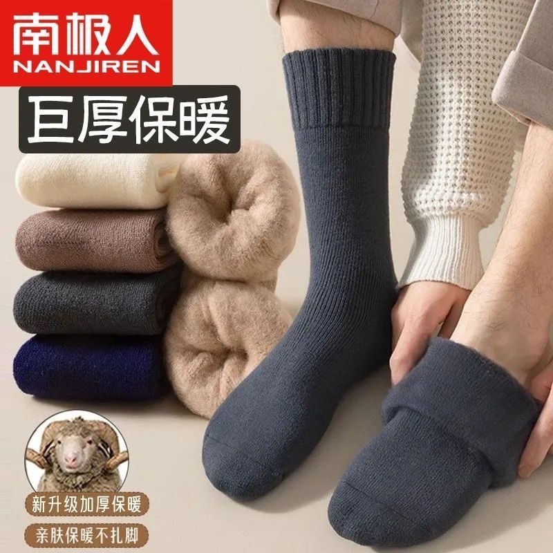 南极人抗寒袜子加厚男款冬季保暖长筒加绒加厚秋冬男士长袜毛圈袜