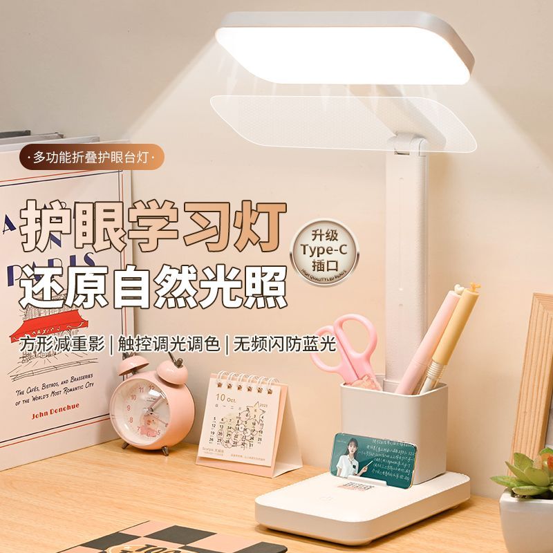 灯屋护眼LED可充电插电大学生宿舍折叠儿童学习保护视力阅读台灯