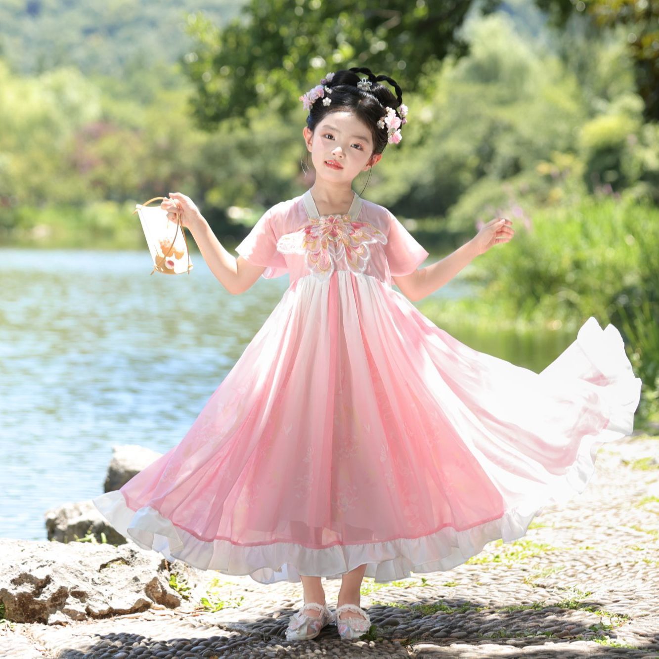 汉服女童夏季2025新款儿童古风国风超仙女孩连衣裙高端表演