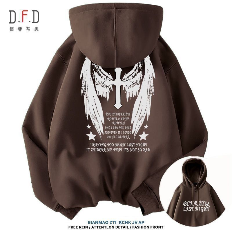 美拉德秋冬街头vibe十字架翅膀连帽卫衣女ins风嘻哈潮流宽松上衣