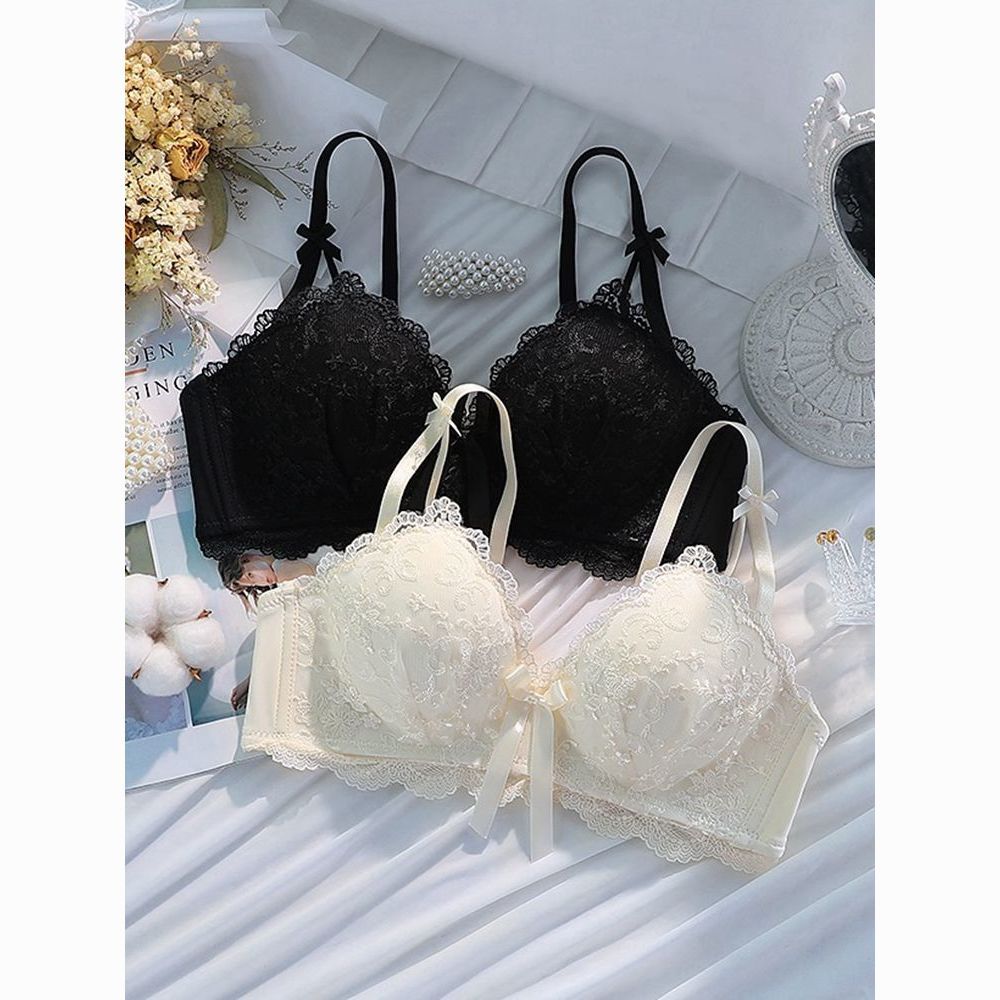 【都市丽人】少女风小胸聚拢显大无钢圈收副乳防下垂薄款蕾丝文胸