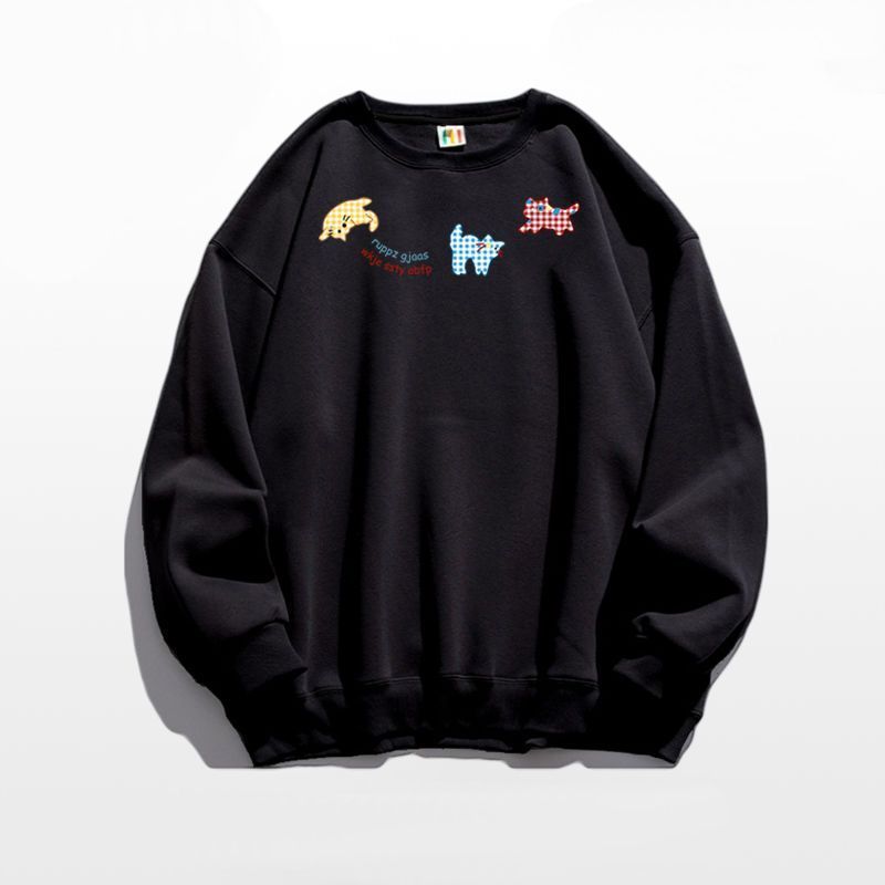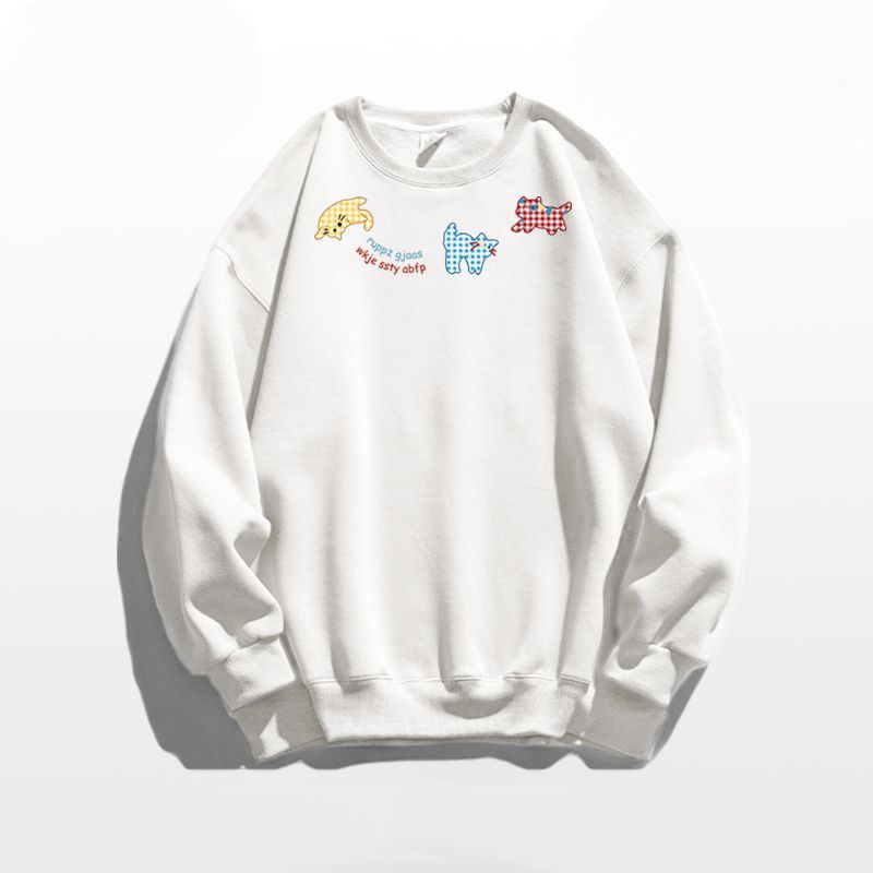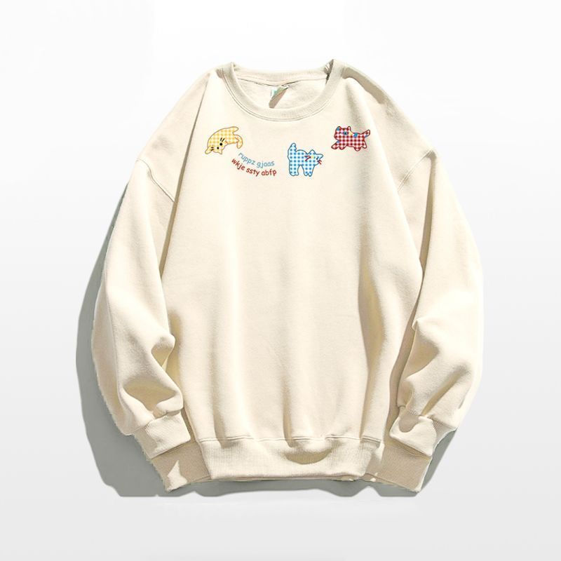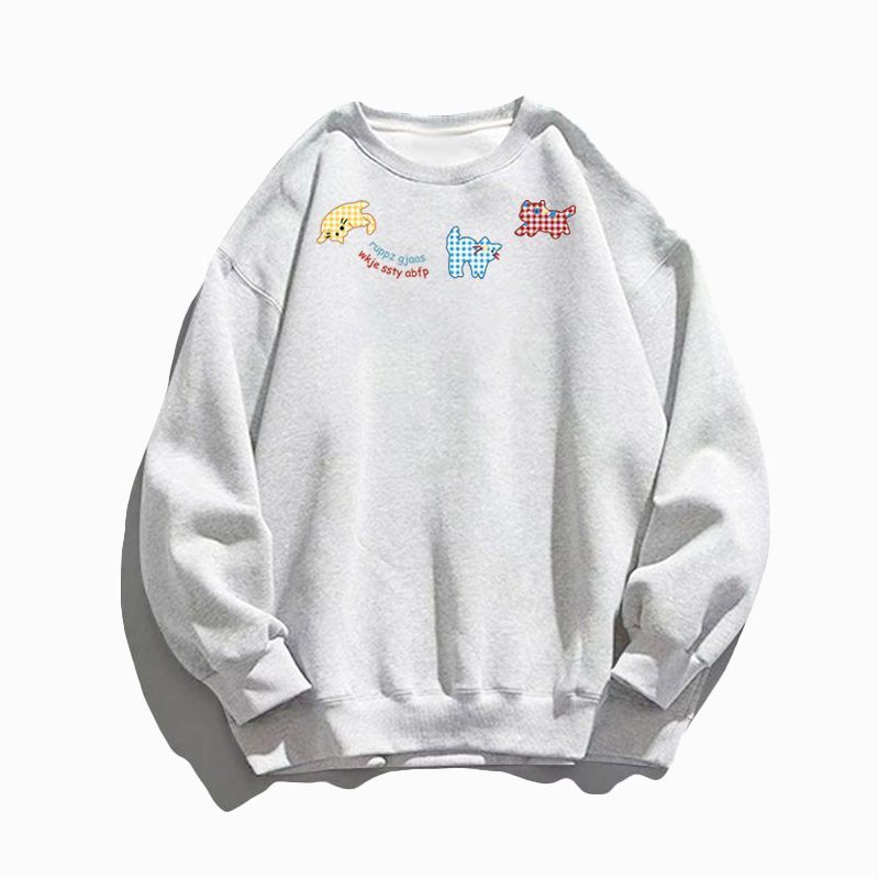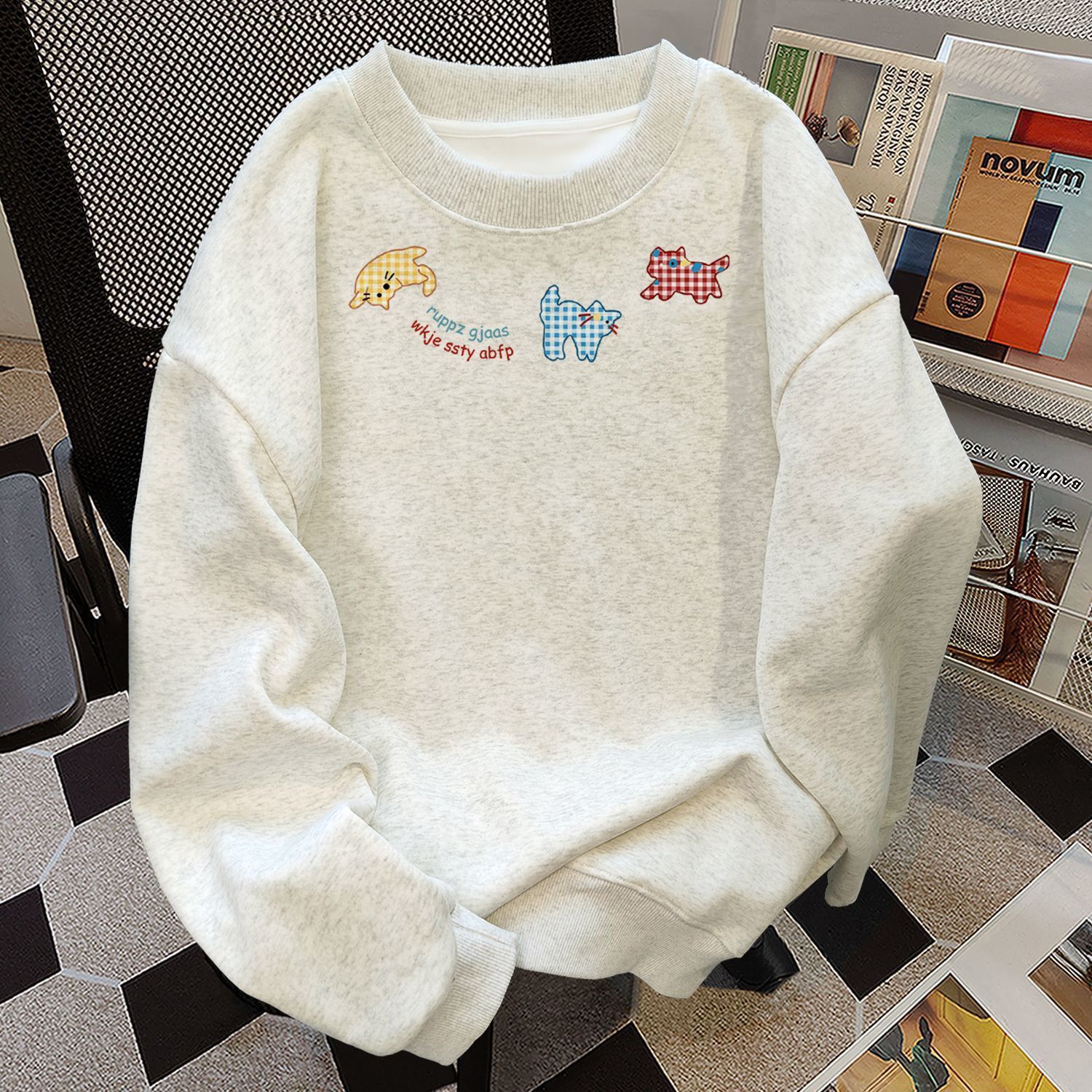 白灰圆领卫衣小猫印花秋冬设计感oversize宽松百搭无性别上衣ins
