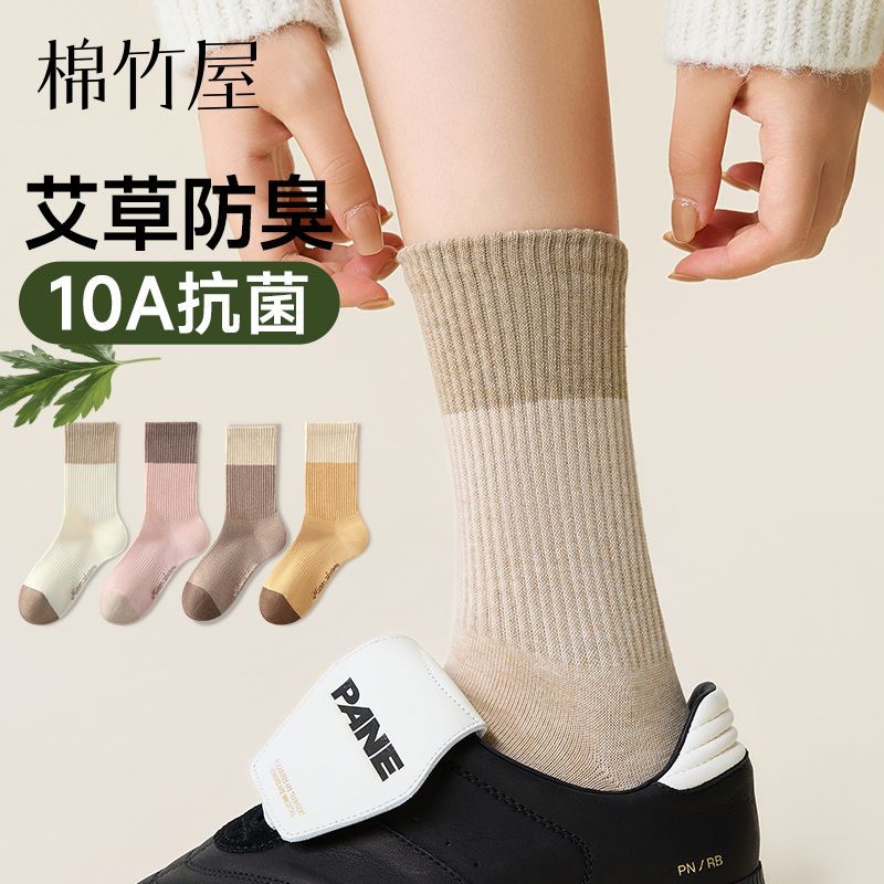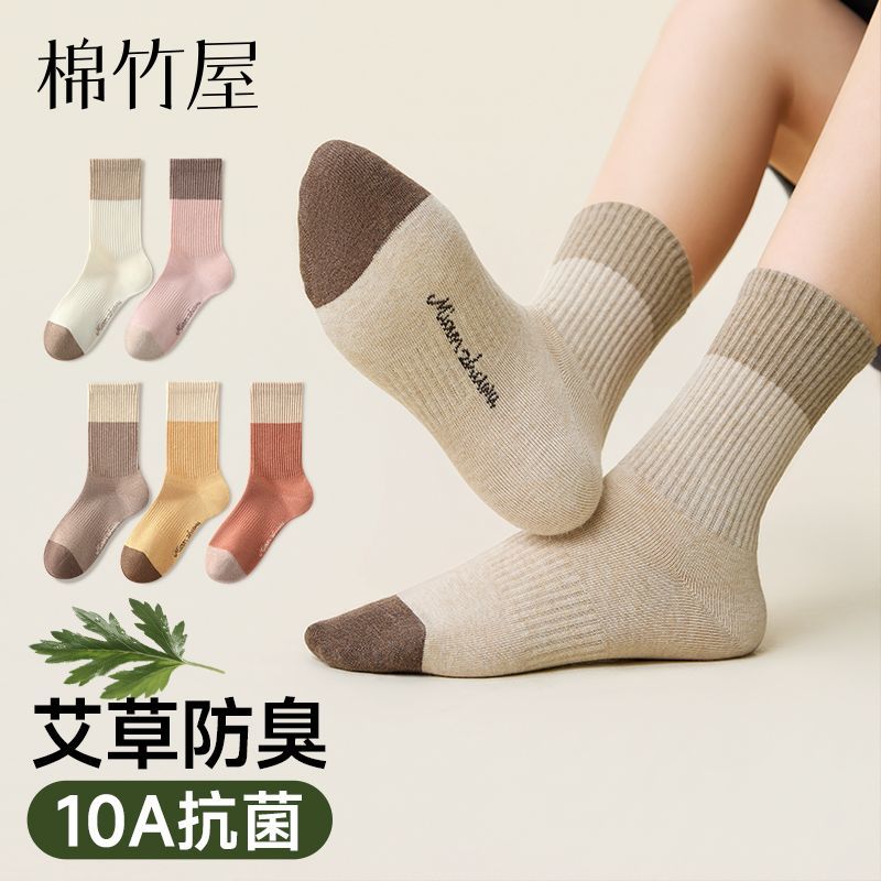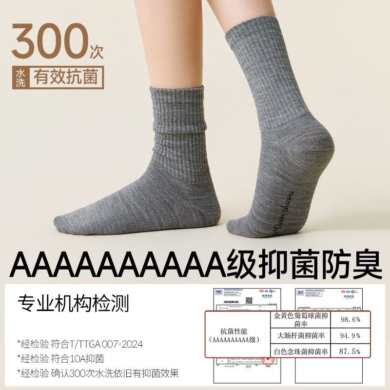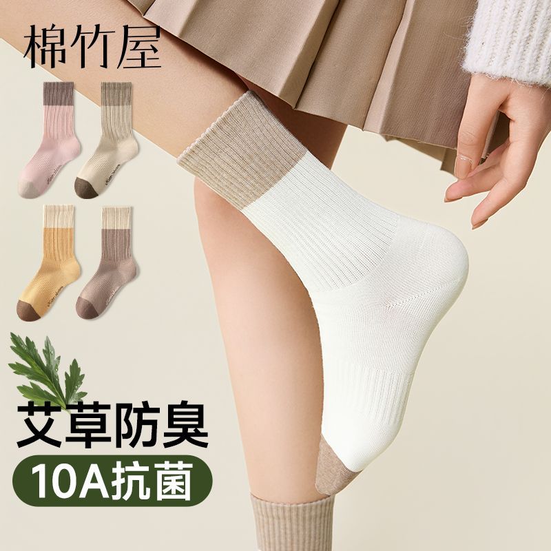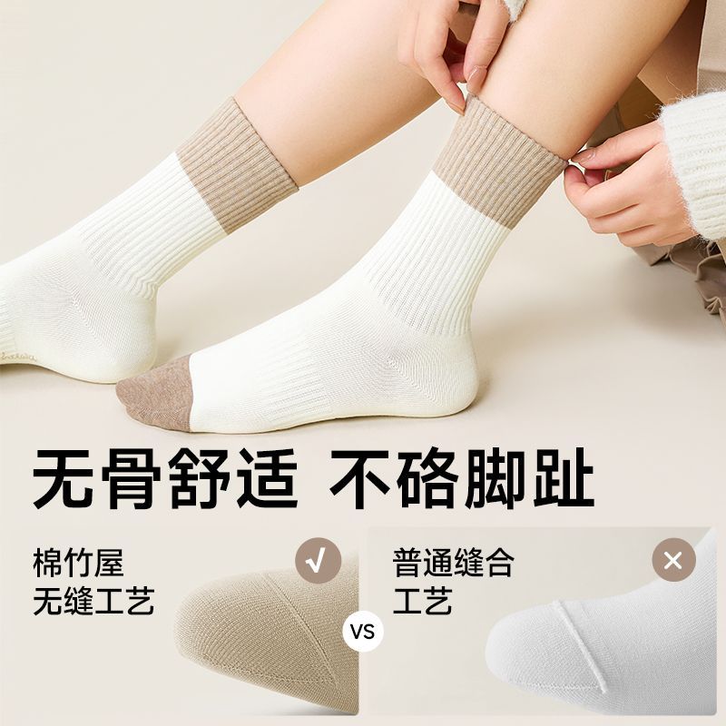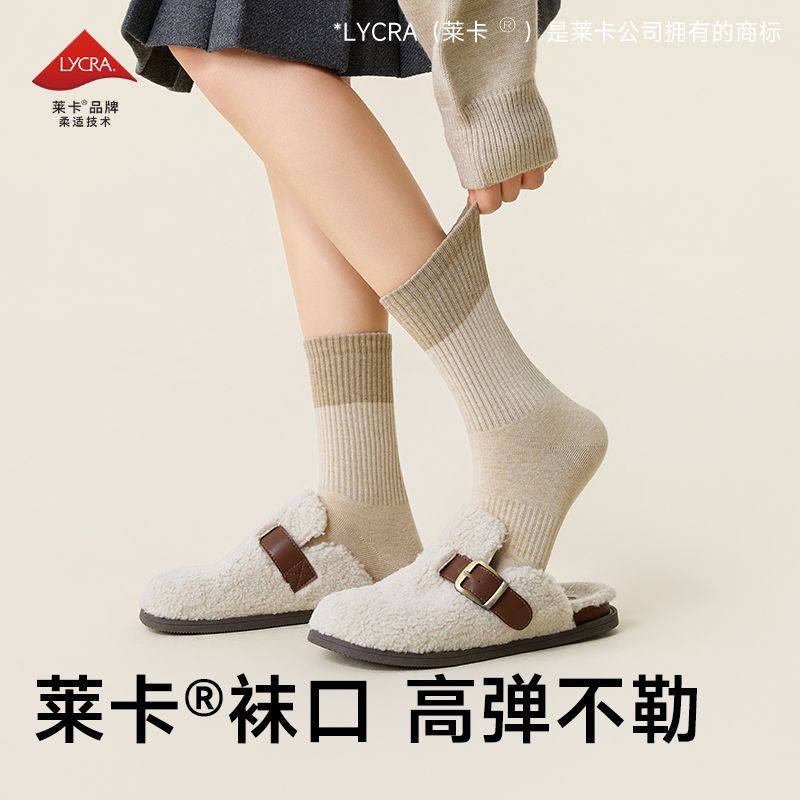 袜子堆堆中筒袜加绒加厚防臭新款撞色可爱睡眠秋冬保暖长筒袜