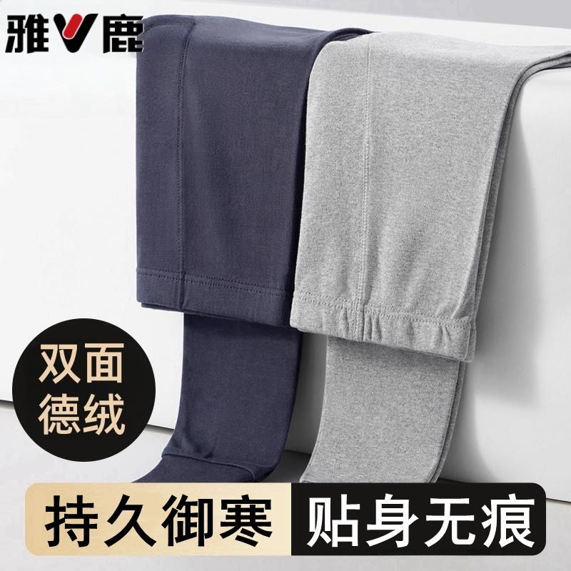 男士双面秋裤德绒加厚无痕保暖防寒打底底裤休闲裤发热冬季衬裤