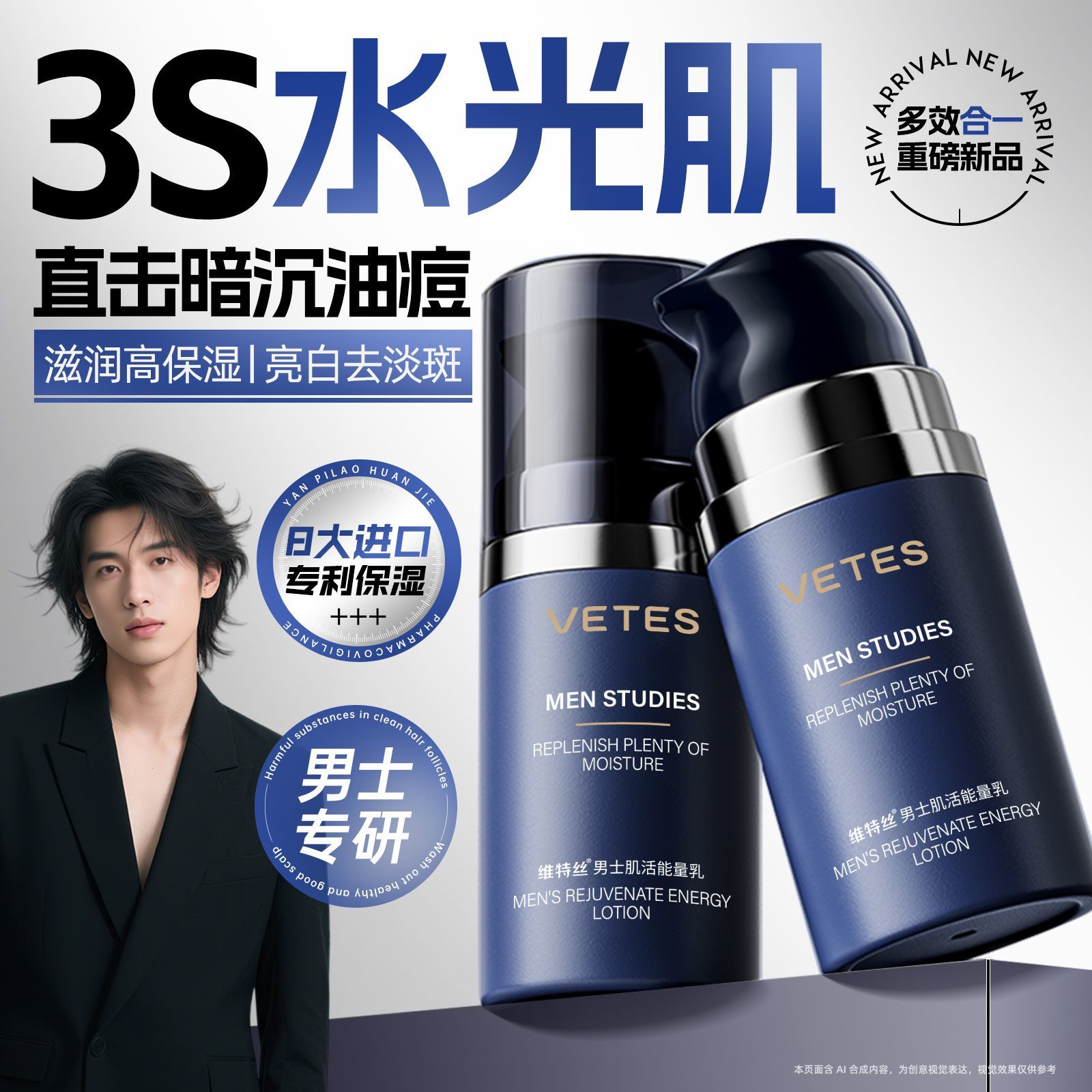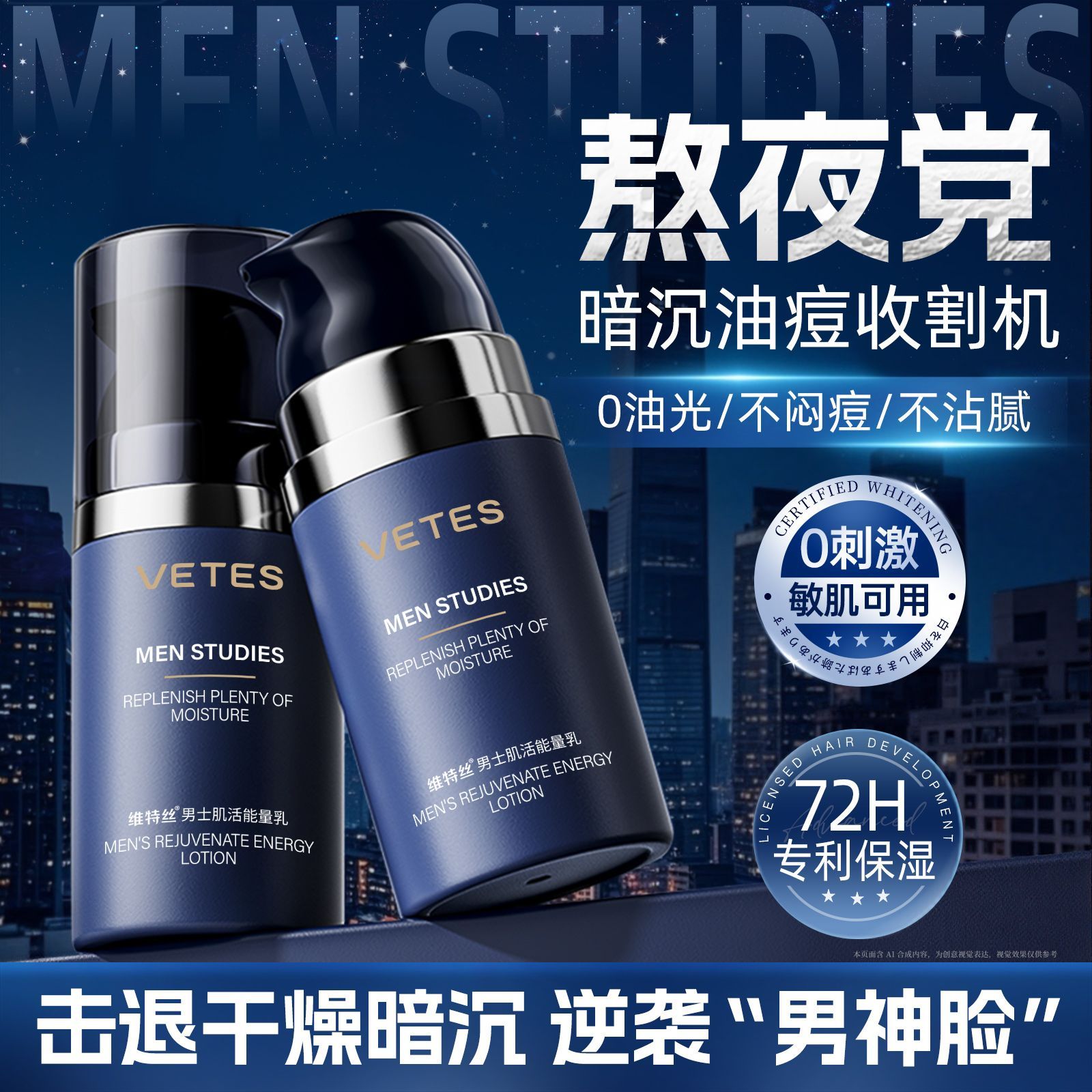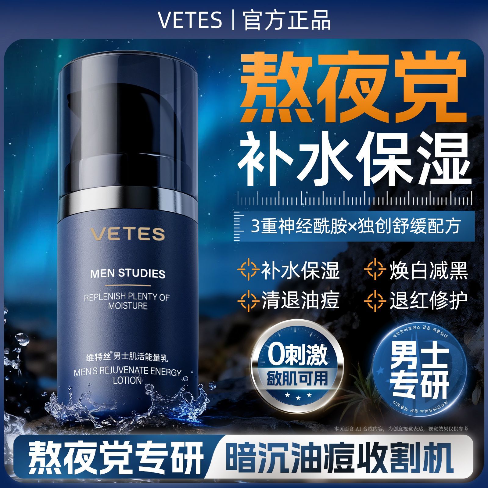 维特丝男士专用面霜补水保湿修护紧致提亮脸部控油清爽不油腻乳液