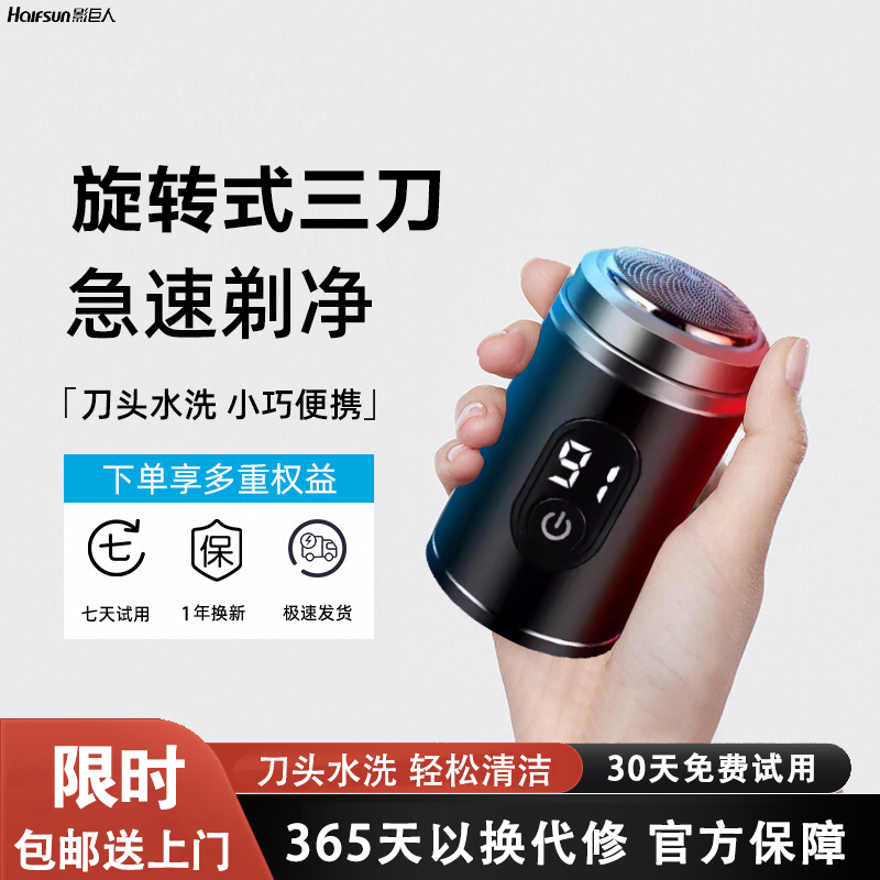 影巨人防夹须电动剃须刀浮动刀网水洗数显快充剃胡须刀可充电