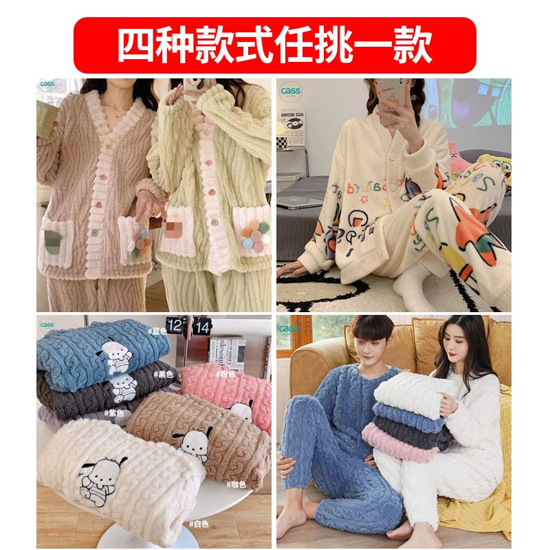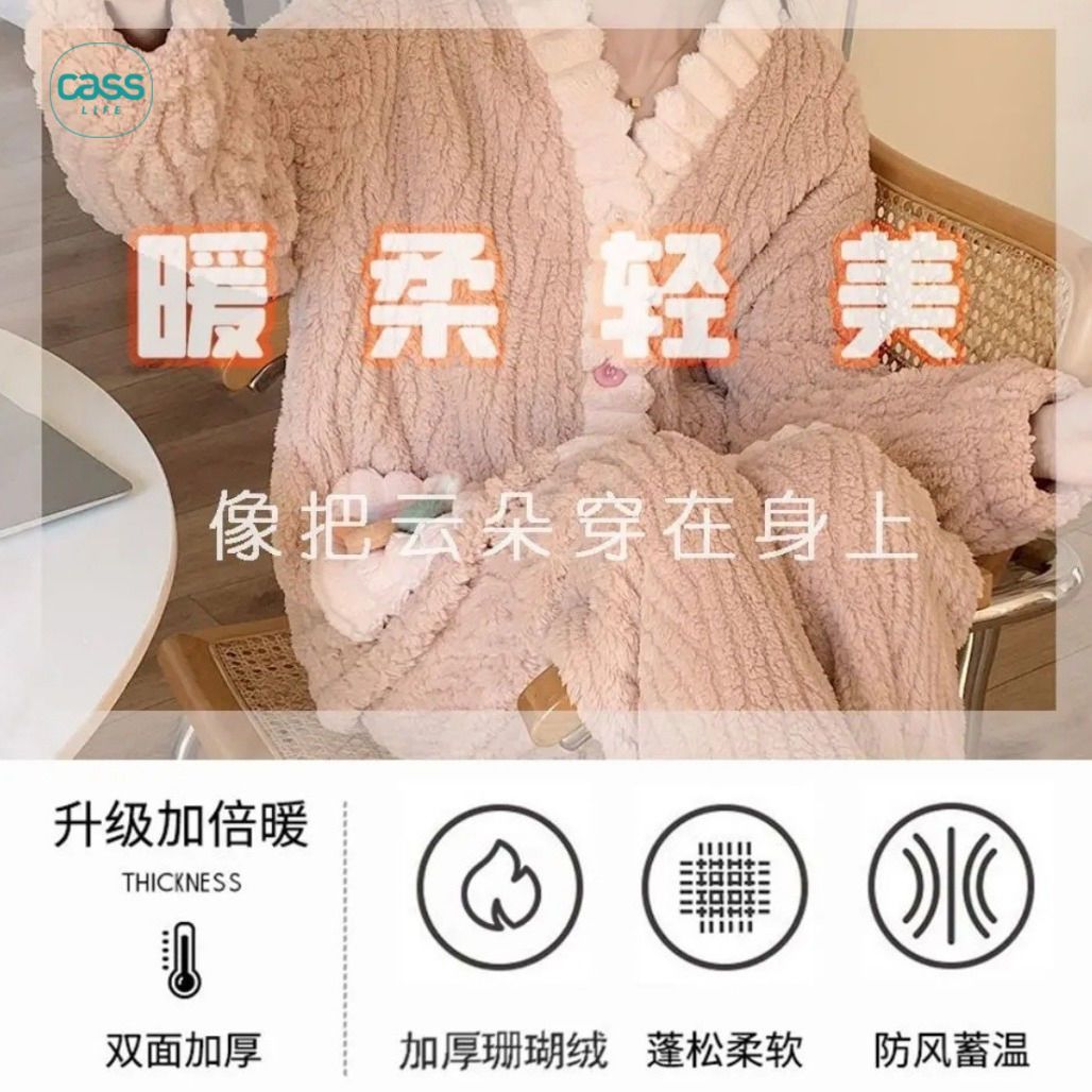 佳适彩虹开衫睡衣女珊瑚绒睡衣冬季女款加绒法兰绒家居服裤子套装